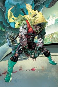 Damian was raised by his mother’s League of Assassins to be a remorseless killer. As a result, he is petulant, violent and socially inept. That’s when he is (quite literally) dropped on the doorstep of his father, a man who didn’t even know Damian existed; the demonologist Jason Blood. But Damian does not yet know Jason’s secret; he shares his existence with Etrigan, the Demon! So now, as this family works together and against each other to find the answers, Damian is constantly forced to decide … is he his mother’s son; is he Damian Blood; or is he the Son of the DEMON?!