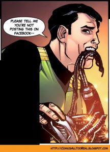 He’s the hottest name in social media. He’ll go anywhere, meet anyone, and most importantly, EAT EVERYTHING. He’s Tenzil Kim, the Matter-Eater Lad, and chances are #TENZILATEIT. Klaw’s claw? #TENZILATEIT. Doctor Destiny’s Psychotron? #TENZILATEIT. Captain Boomerang’s … oh, you get it. His adventures in this Brave New World get millions of views. Legend even has it that meme is short for “Matter Eater, Matter Eater”! But why is he being recruited to run for SENATOR? Guest starring Prez Rickard!