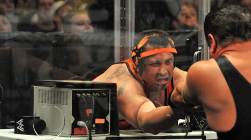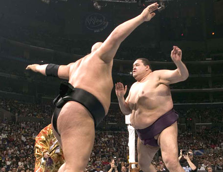 Todd Weber: Sumo is a respected sport in Japan (likely due to its traditions being ingrained into Japanese culture), but outside of that context, it’s pretty ridiculous. Man mountains of scantily clad flesh simply try to move their equally massive opponent outside of the circle…and that’s it. Akebono versus The Big Show from WrestleMania 21 is basically the visual equivalent of listening to Nickelback for two straight hours. This thankfully brief match features two obese men in diapers pushing each other until the Japanese one wins. Okay, then.