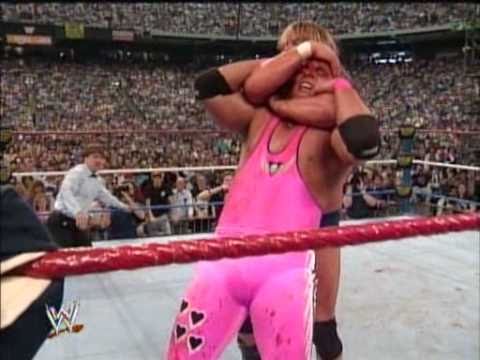 Steven Graham: This may be the greatest “Rowdy” Roddy Piper match on tape. Bret “Hitman” Hart was made in this match. What a great performance, from the amazing selling to the great blade job (and he was able to convince Vince McMahon that it was “hard way”). Usually in a face vs. face match, Bret plays a great subtle heel, but Piper takes that role tonight as Bret is an epic underdog. There is a moment when the referee is down and Piper grabs the ring bell, however the crowd is so pissed off that Piper throws the bell away. That is great storytelling there. Without this match you may not have got Bret the WWF Champion later in that year as he proved he can be in there with the top dogs and hold his own. Let’s talk about the finish. Piper gets his sleeper hold finisher on Bret, but Bret walks up the ropes and flips over, causing Piper to pin himself. This finish is so great it plays an important role in “Stone Cold” Steve Austin’s career, as Bret uses it at Survivor Series 1996 to beat Austin. Austin then uses it at WrestleMania X-7 in his match with The Rock.