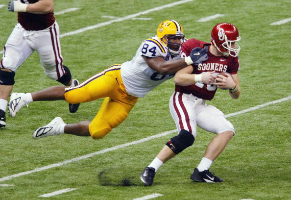 Scott: John Navarre was watching a guy walking in quicksand. He had a good arm and with time could work defenses over with short slant passes. However against this vicious LSU defense he wasn’t going to get that kind of time. Navarre would only complete 8 passes and be sacked 11 times as LSU would dominate time of possession and shut the Wolverines out 21-0. Meanwhile in Tempe Jason White would do the same thing that LSU would do. White controls time of possession while the powerhouse Sooners defense would shut junior Matt Leinart down and hold Reggie Bush and Lendale White to a combined 79 yards on 32 carries. Oklahoma wins 27-6.
