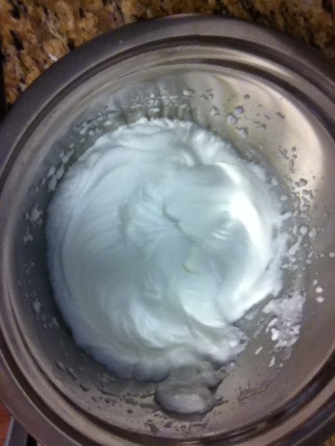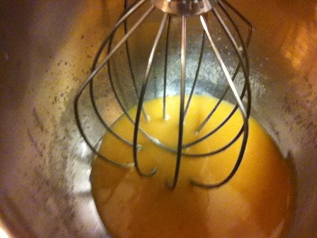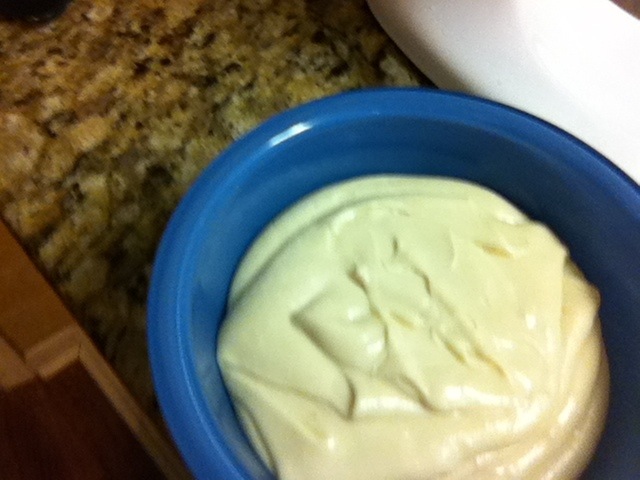Cream together 1 cup (2 sticks) of butter and 1 cup of sugar yogurt until fluffy. Add 3 egg yolks. In a separate bowl whip the 3 egg whites together. Beat to a stiff peak.